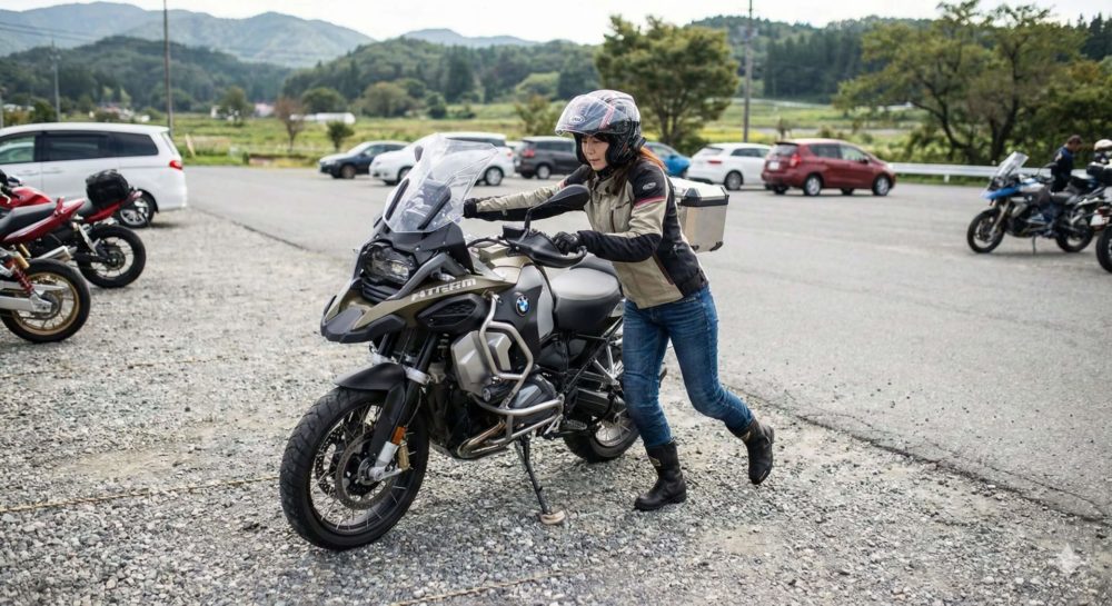 「もし目的地のお店の駐輪場が、砂利道だったら?」「急な坂道の途中にあったら?」バイクに不慣れな方がそこに入っていけば、高確率で立ちゴケの餌食になります…。